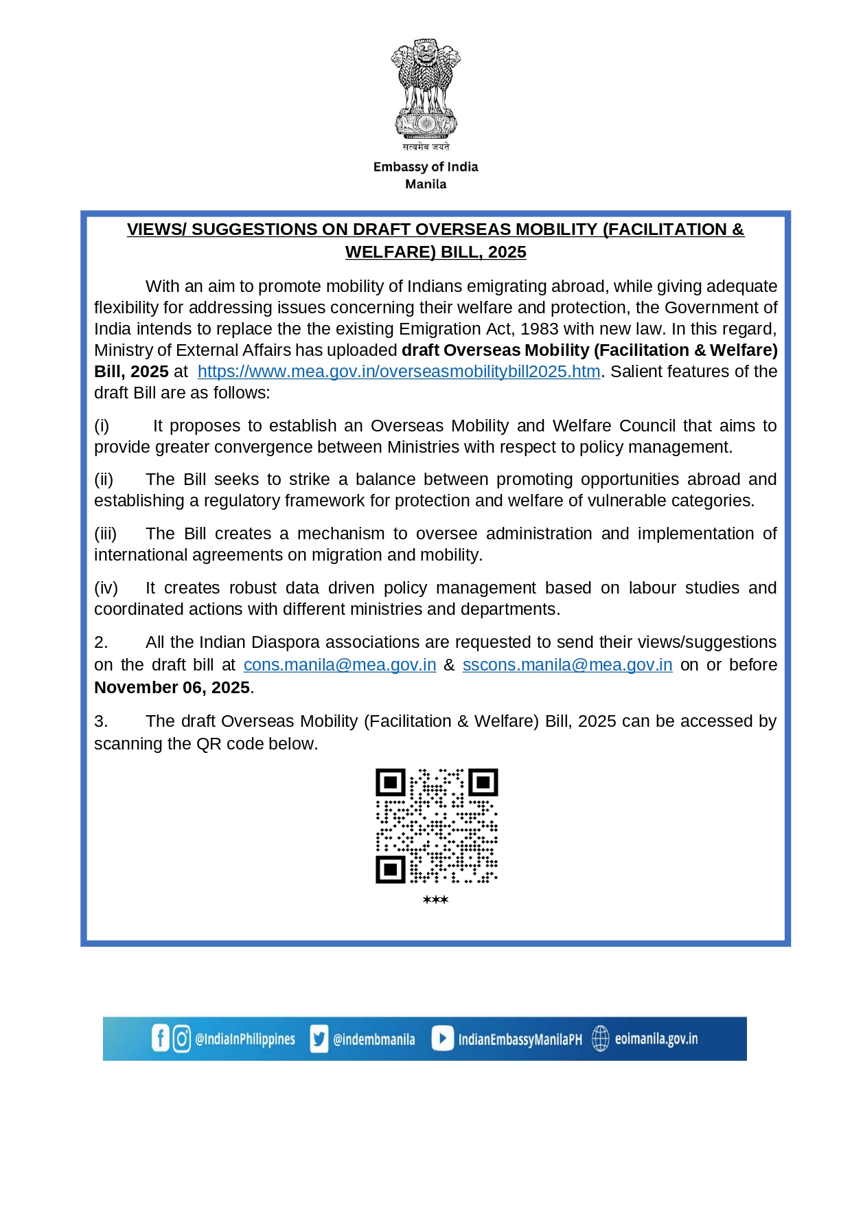 VIEWS/ SUGGESTIONS ON DRAFT OVERSEAS MOBILITY (FACILITATION & WELFARE) BILL, 2025